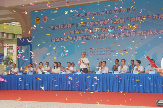 党委书记周建强、副书记陈颂坚、副院长何嘉年、副院长杜星等嘉宾以及本届“鲁班节”各项赛事的评委老师出席了开幕式。本次活动由广东电白建设集团有限公司赞助支持,活动也邀请了中建六局、粤建装饰集团、永道工程咨询有限公司等多家等合作企业参与,校企协同搭建科创育人平台,助力土木学子提技能、强实践。