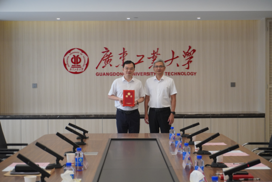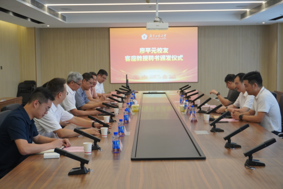 随后,陈卓武副书记向廖平元校友颁发客座教授聘书,并合影留念。