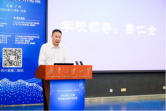 开幕式上,鲁仁全在致辞中代表学校对参加论坛的各嘉宾、专家学者、老师和同学表示热烈的欢迎和诚挚的感谢,并指出本次论坛以“双碳目标下绿色岩土工程可持续发展”为主题,为广大教师和专家学者积极探讨、碰撞思想提供了交流平台,对绿色岩土工程领域的创新与发展有着积极的推进作用。
