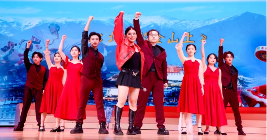 纵观75年来新中国的伟大成就,每个年代的辉煌历程都由党和人民共同走过,每个亮眼成绩和发展成果都由广大人民群众共享。“西藏和平解放是党中央、人民军队、当地政府和人民共同努力的结果。”配合着崭新的acappella(无伴奏纯人声合唱)表演形式,一场别开生面的党课从50年代西藏和平解放的历史开始了。