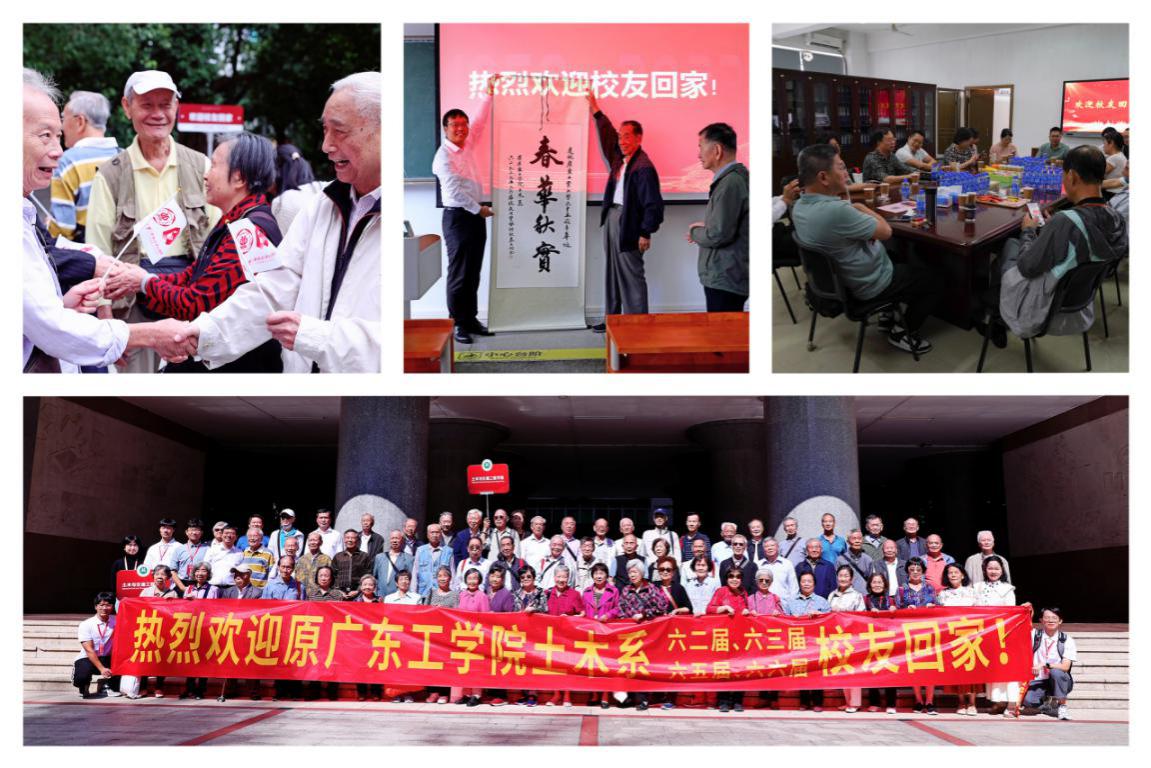 11月12日,东风路校区迎来了原广东工学院土木系62届、63届、65届、66届老校友返校相聚。为表达对母校的深情厚爱和感激之情,校友们向学院赠送了由65届校友秦大同所书的《春华秋实》字画。大学城校区,退休老教师、校友们如约返校,回到各系所参加系所座谈会,共叙师生谊、校友情。校友们深切感受到学院的飞速发展,齐聚一堂,追忆峥嵘岁月,擘画宏伟蓝图。