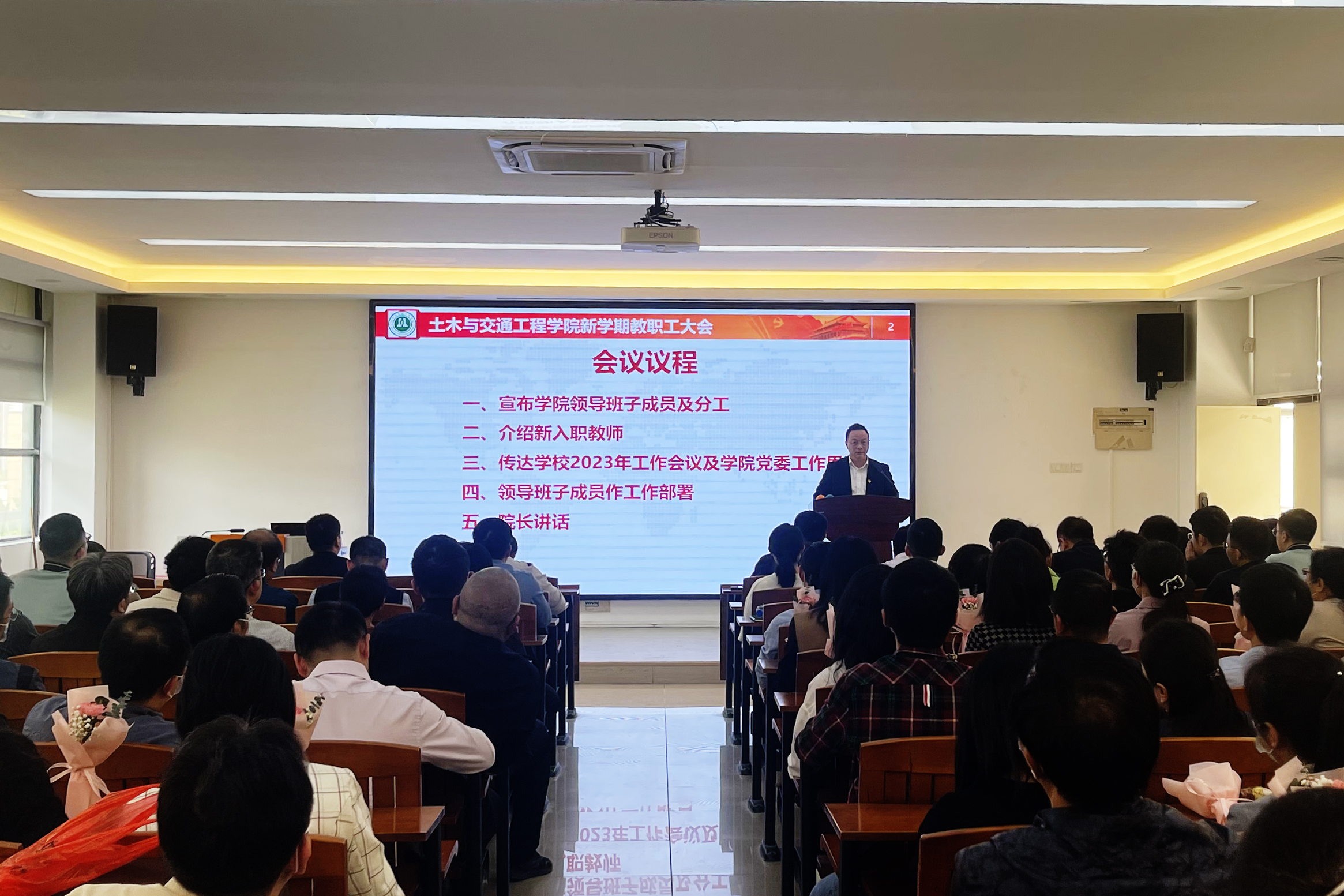 最后,周建强强调,当前学院发展希望与挑战并存,全院上下要持续深入学习贯彻党的二十大精神,直面风险与挑战,切实发扬求真务实、团结奋斗的精神,扎实推动学院各项重点工作落地见效,为学校建设高水平创新型大学贡献土木力量,以扎实有效的工作成绩献礼本科办学65周年。