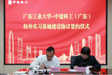 同中建科工(广东)在穗举办校外实习基地签约仪式。我院院长刘锋、副院长朱江等学校代表,中建科工(广东)总经理胡军,党总支副书记、工会主席彭庆南等企业代表出席签约仪式。