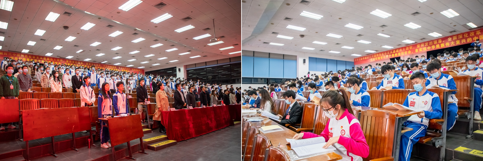 初冬时节,阳光和煦。12月3日晚,我院第五次团员、学生代表大会暨第十次研究生代表大会在大学城校区一号大教室隆重召开。学校团委书记王亚煦、学院党委副书记陈颂坚,学校学生会主席团成员陈文州、学校研究生会执行主席刘鹏,以及兄弟学院团委书记、学生会秘书长、研究生会秘书长等出席大会。学院团员代表、本科生代表、研究生代表等共计221人参会。大会由学院团委书记杨刚主持。