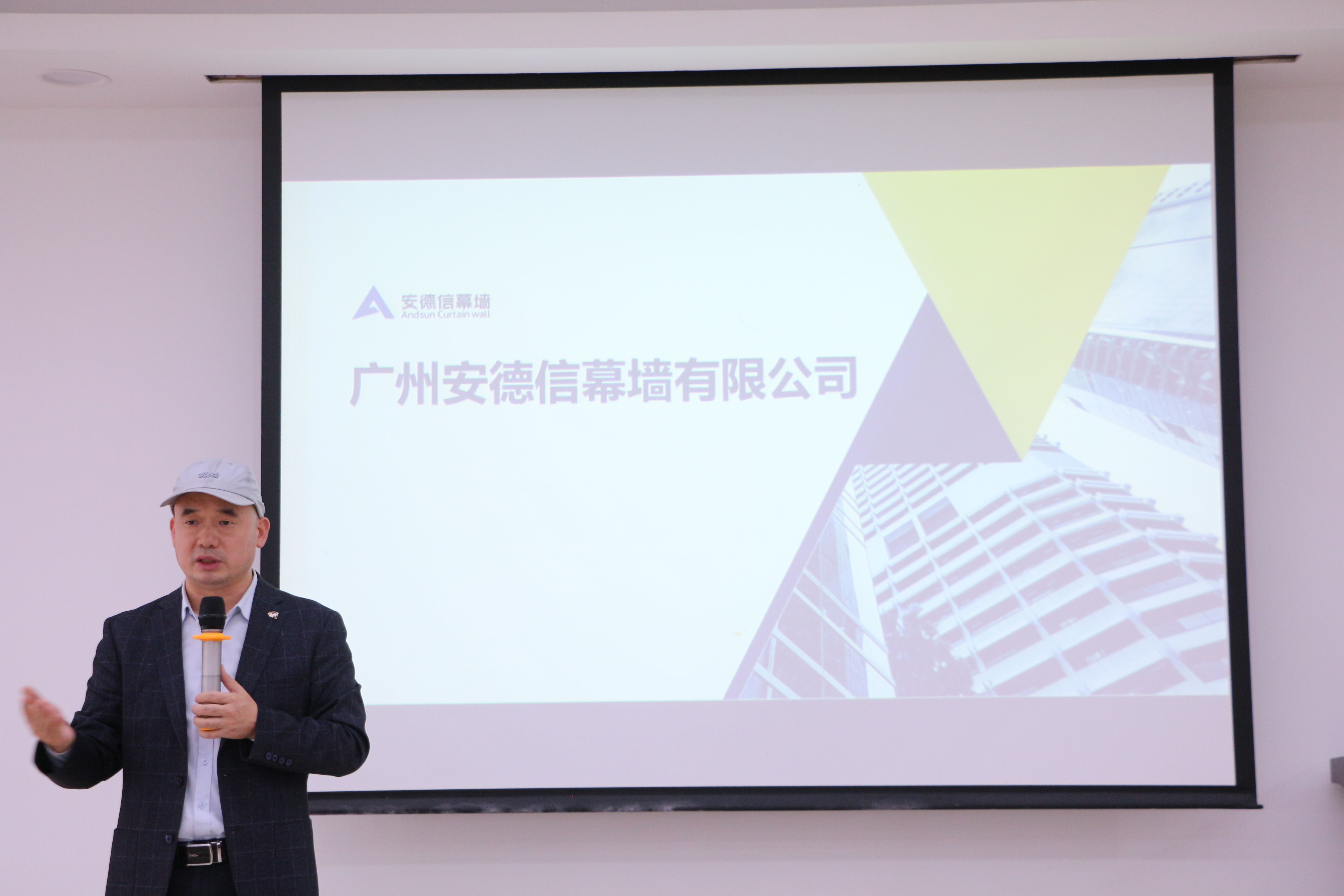 王文欢先生以“冷静理性择业,自信步入社会”为主题,结合自身大学经历和创业经验,教导学生珍惜大学时光,尽早绘制人生蓝图,确立择业之路。王总结合广州安德幕信幕墙有限公司,就当下土木建筑行业的现状与未来发展的趋势向同学们进行解读,他勉励学生:人生有很多条路,每条路都有精彩,也有艰辛,关键我们得有强大的心志,不怕苦从一线做起,踏踏实实,做好做专。提问环节,同学们积极踊跃,对于同学们提出各种问题,王总均做了细致且专业的解答。