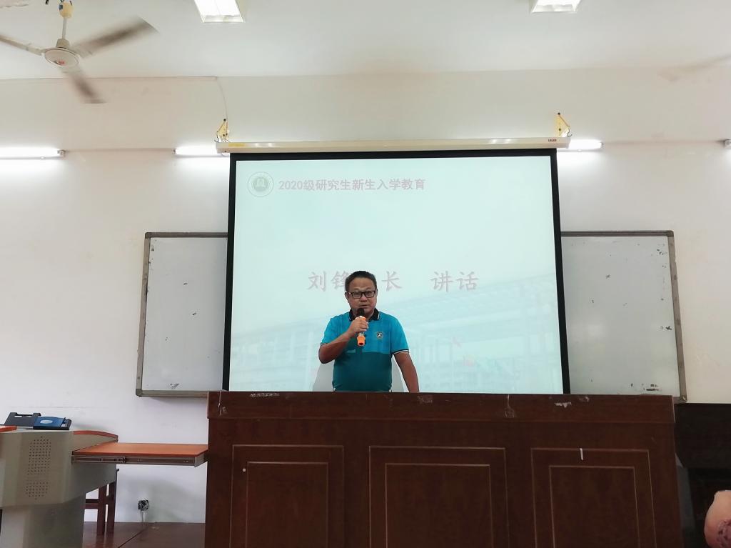 2020年9月16日上午9:00,我院在实验二号楼520教室召开了2020级研究生新生入学教育动员大会。学院院长刘锋教授、副院长王志红教授、导师代表曾俊杰副教授和全体2020级研究生新生参加本次大会。会议由研究生辅导员马京帅老师主持。