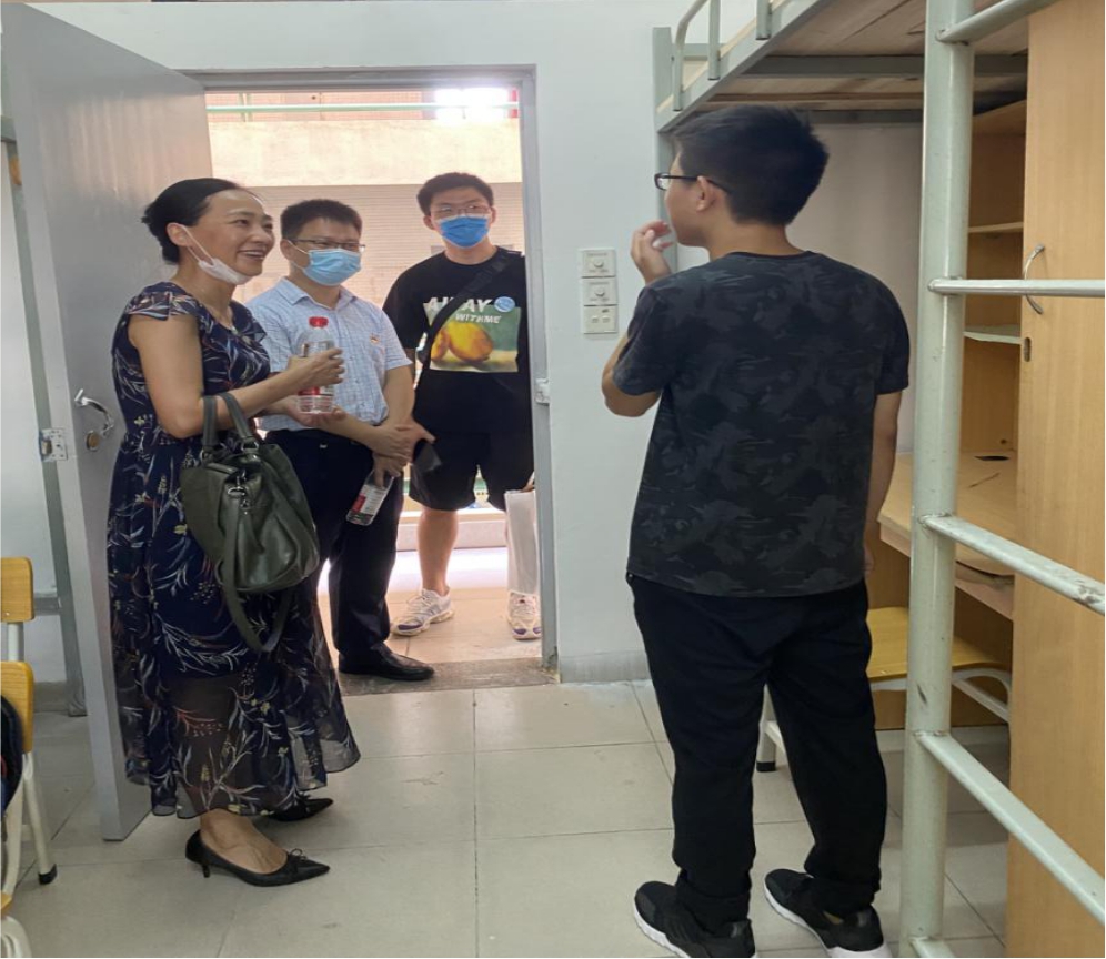 走访过程中,陈卓武副校长与新生进行了亲切交流,详细询问新生的报到情况,了解新生的生源和家庭情况。陈卓武副校长勉励新同学要志存高远,树立好目标,刻苦学习,争取学有所成。张育广书记叮嘱同学们加强安全防范意识,配合好学校疫情防控工作,尽快熟悉和融入大学生活。