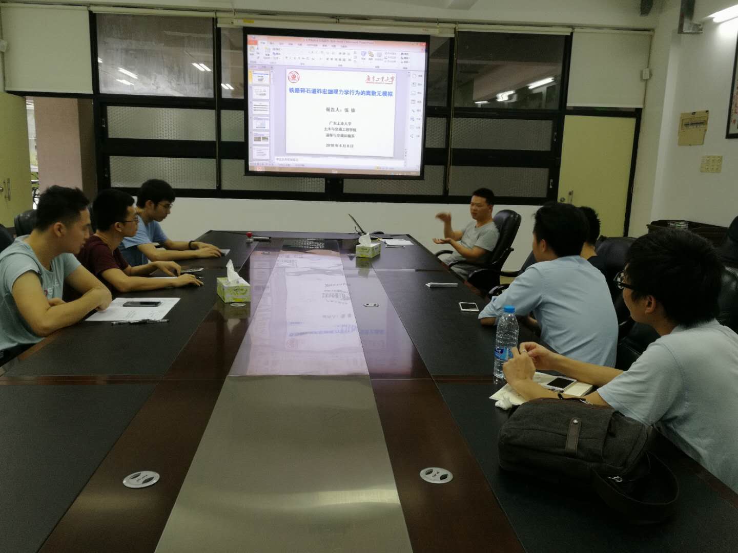 为提升我院学术气氛,促进教师间的科研思想交流,提高我院科研水平,2018年6月8日下午,学院第23期科技交流系列讲座在实验二号楼502会议室举行。本期讲座邀请我院道桥与交通运输系教师张徐博士为大家做了“铁路碎石道砟宏细观力学行为的离散元模拟”的学术报告。我院邹超老师及部分研究生参加了讲座和讨论。