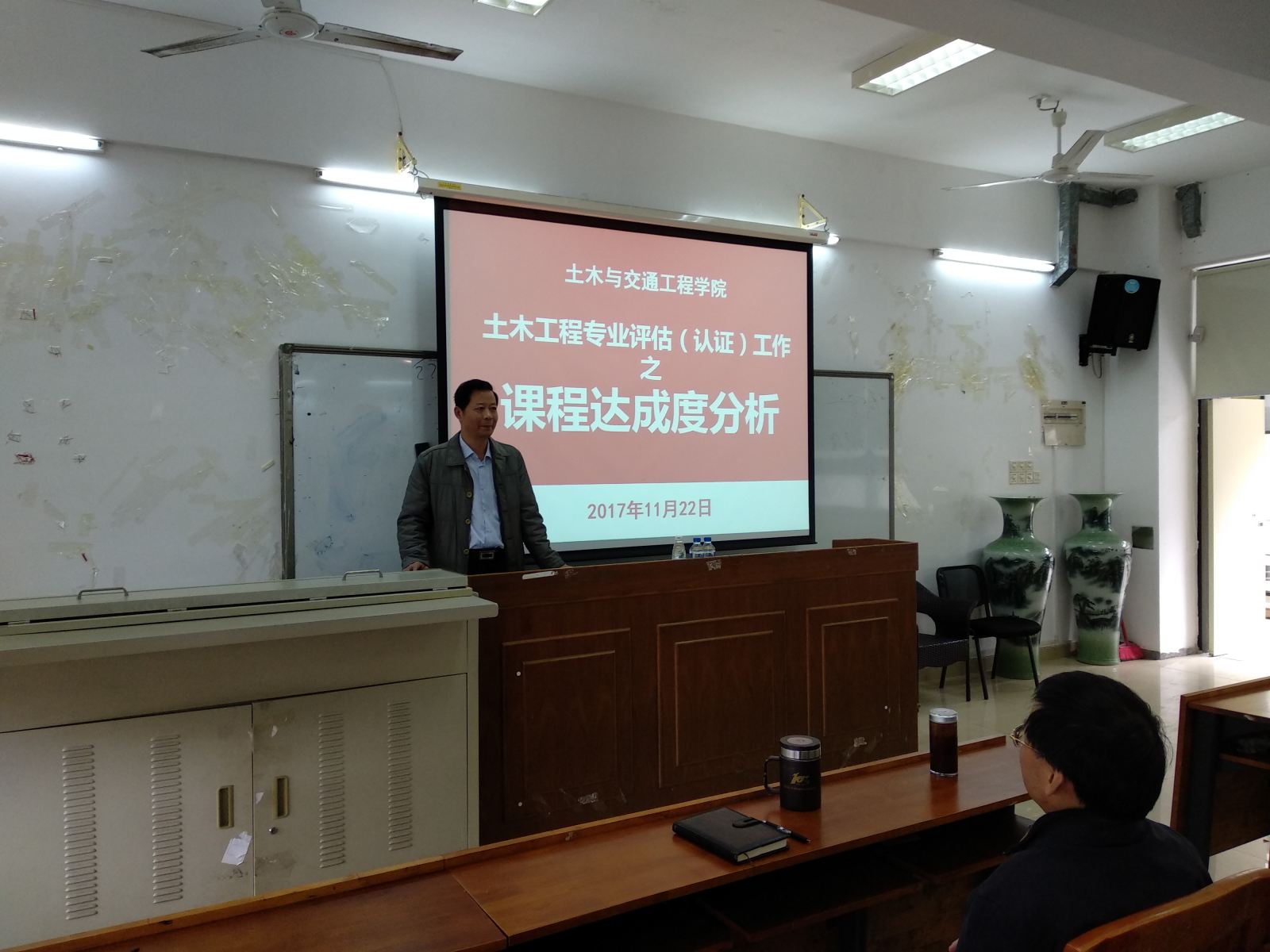会议中,吴炎海副院长代表学院向外学院承担土木工程专业课程的任课教师表示衷心的感谢,感谢老师们的支持和配合。学院教学秘书、土木工程系副主任何嘉年向参会的老师们进行了专题汇报,深入解读了土木工程专业评估(认证)的精神和要求,阐述了任课教师在专业评估(认证)工作和课程体系建设中的重要地位和积极作用,详细解析了课程大纲修订和课程达成度分析等工作具体实施方法。