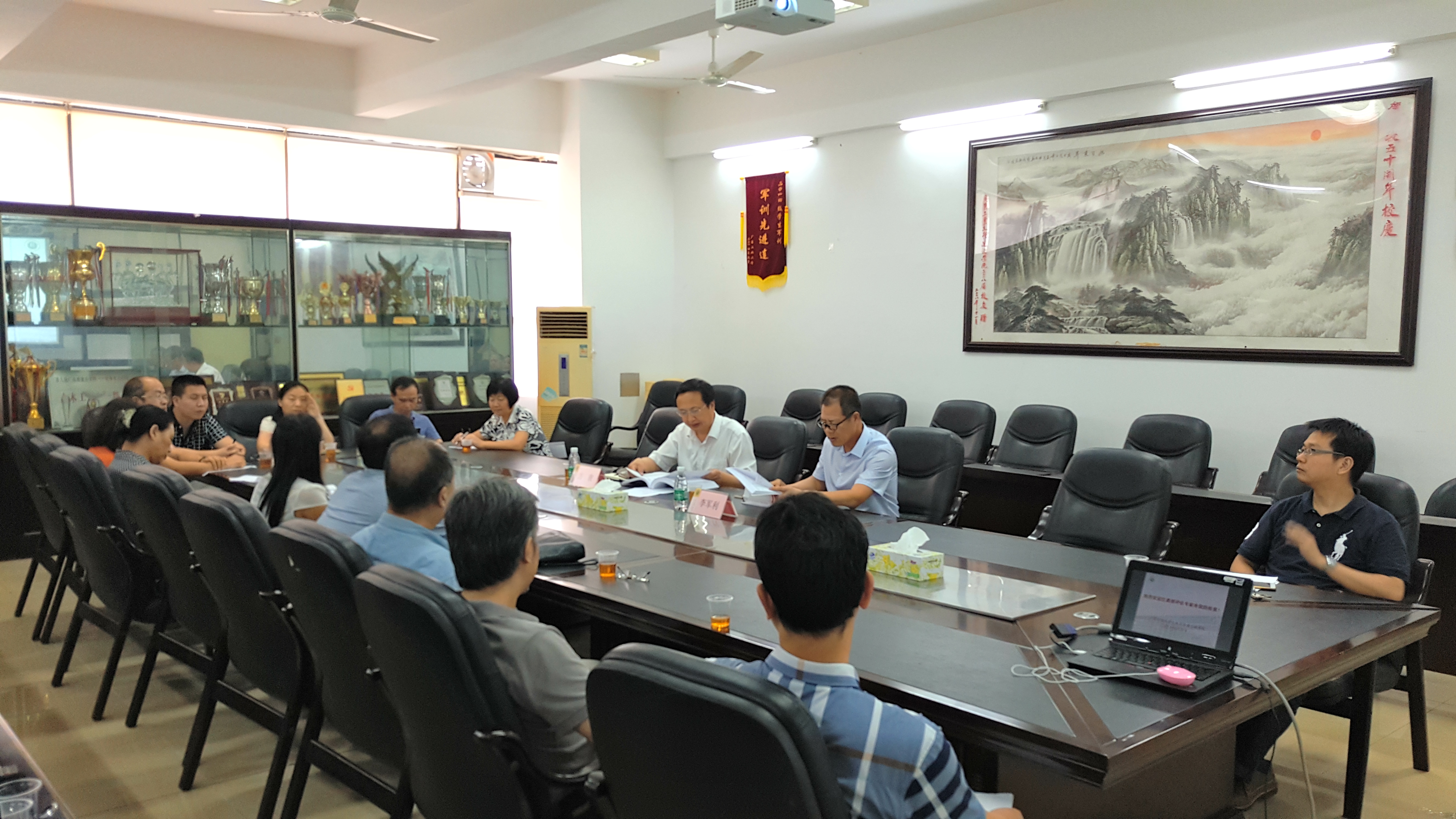 党委书记徐向东,听取了关于学院工作的介绍;考察了建筑与土木工程CAD实验室、虚拟仿真技术训练中心、广东省普通高校“土木工程协同设计与管理虚拟仿真实验中心”和工程管理模拟实验室;召开了专业教师座谈会;调阅了相关教学材料和档案文件,审阅了工程管理专业2016版培养方案和教学计划。