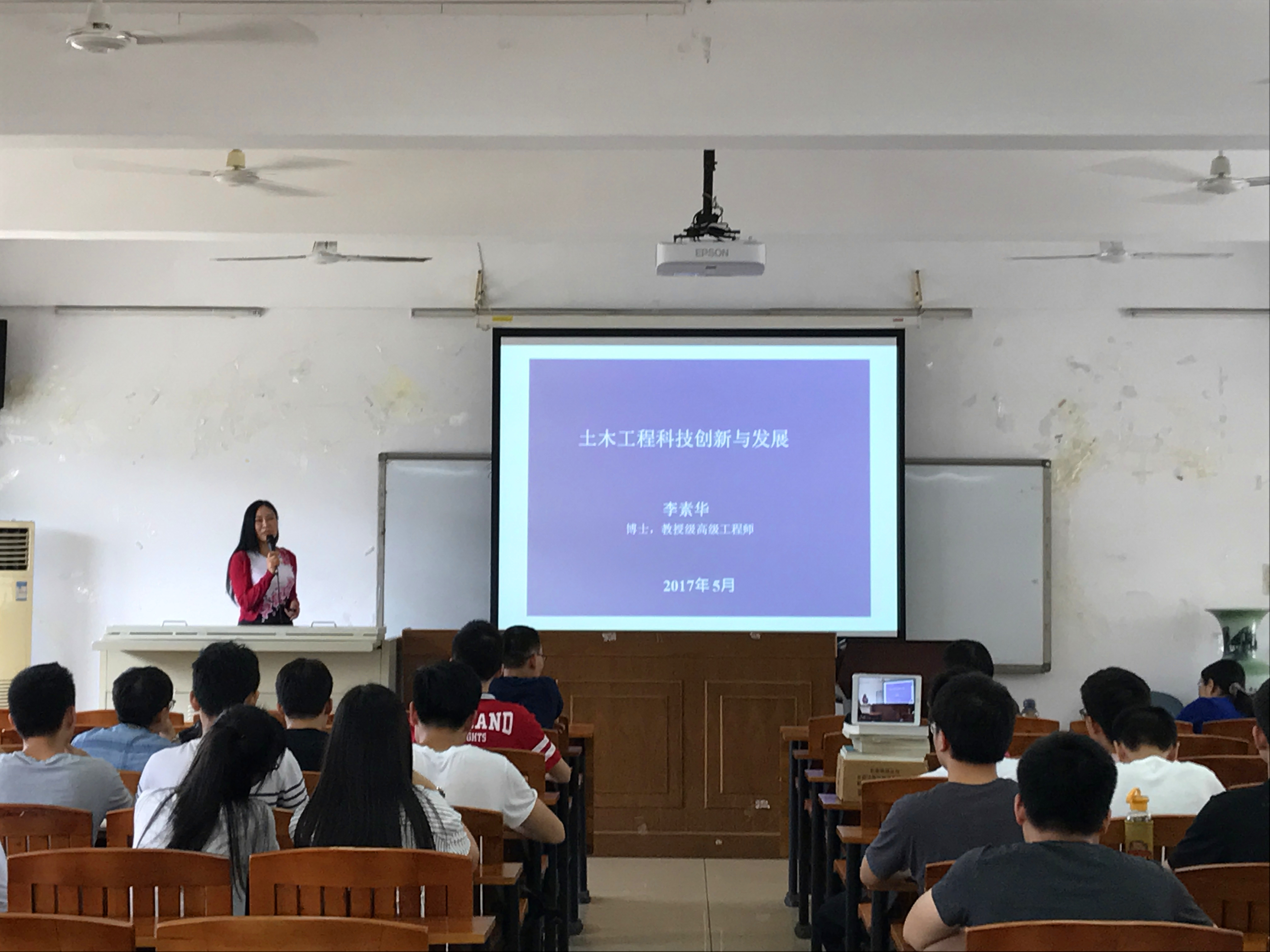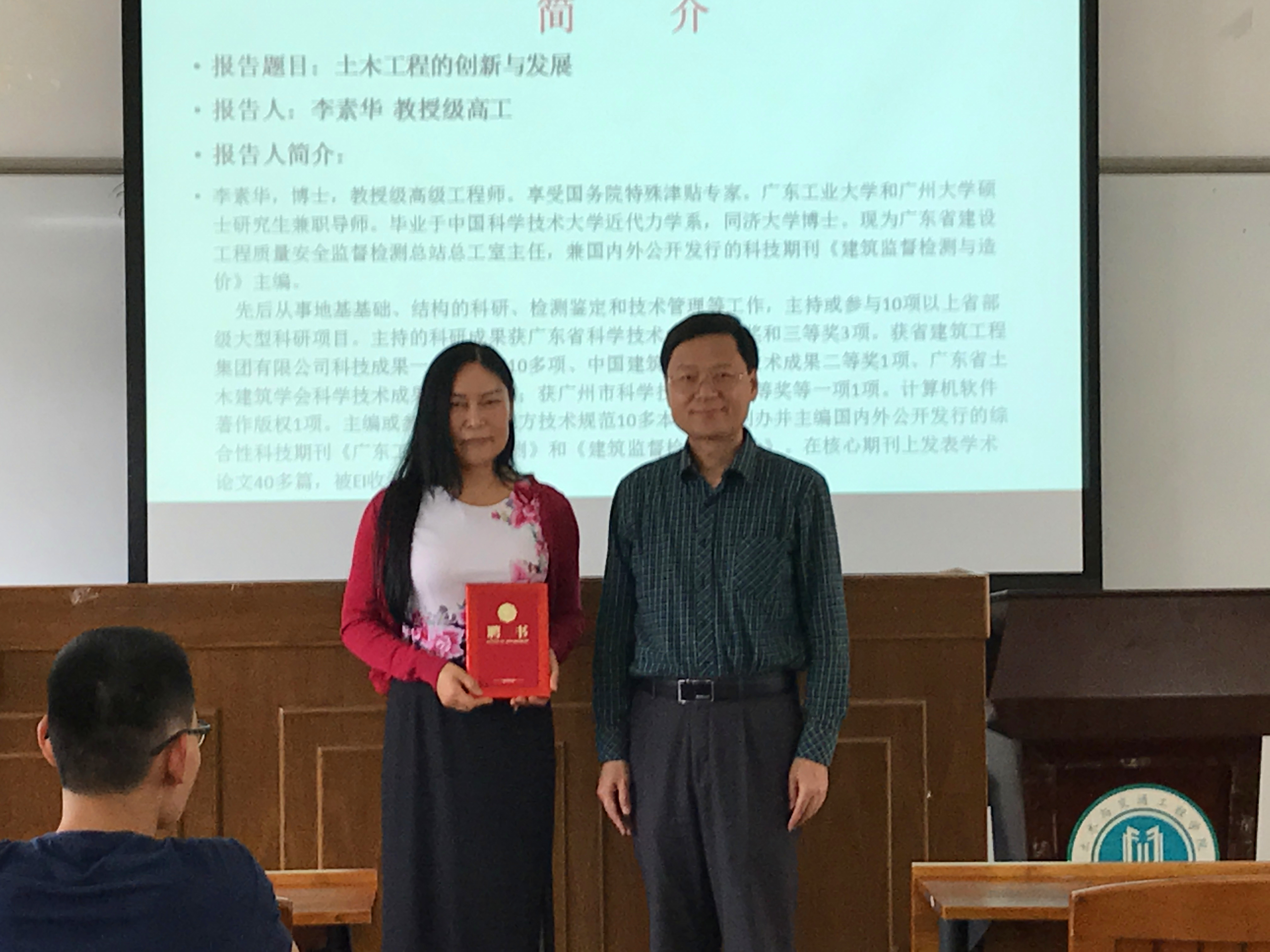 2017年5月23日下午,我院第5期土木论坛----“土木工程的创新与发展”在实验二号楼520举行。本次论坛特邀了享受国务院特殊津贴专家、广东省建设工程质量安全监督检测总站总工室主任、我校硕士研究生校外导师李素华教授级高工作题为“土木工程的创新与发展”的讲座。论坛由动漫狂
