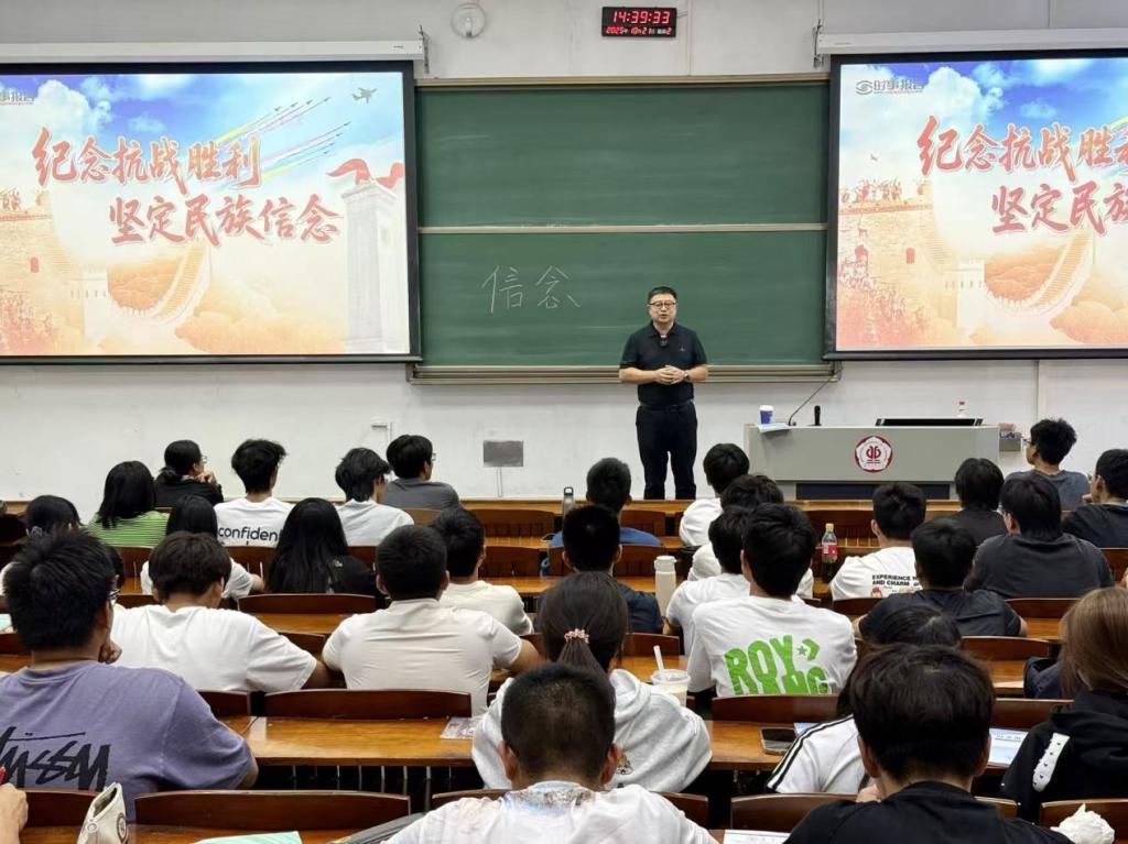 22日,周建强以“纪念抗战胜利,坚定民族信念”为题,为新生们带来了一场兼具思想深度与情感温度的精神洗礼。他系统梳理了中国人民14年艰苦卓绝的抗战历程,从局部抗战的星火初燃到全面抗战的众志成城,再到战略反攻的曙光破晓,清晰勾勒出历史关键节点的脉络。他着重强调,中国共产党是全民族抗战的中流砥柱,始终站在抗战最前线;而中国战场作为世界反法西斯战争的东方主战场,牢牢牵制日军主力,为世界反法西斯战争胜利作出了不可磨灭的历史贡献。