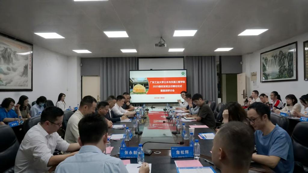 于11月8日在大学城校区实验二号楼502会议室举行2025级校友班主任聘任仪式暨座谈研讨会。活动由学院党委副书记陈颂坚主持,学院党委书记周建强、2024级校友班主任代表罗隐成、2025级校友班主任以及师生代表参加活动。