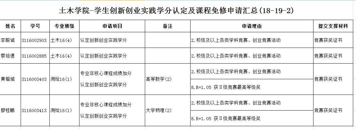 根据教务处《关于做好2018-2019学年度第二学期本科生申请创新创业实践学分认定及课程加分、免修等工作的通知》的精神,我院对照《动漫狂 创新创业实践学分认定及课程免修实施暂行办法》对学生递交的申请进行初审,现公示如下。