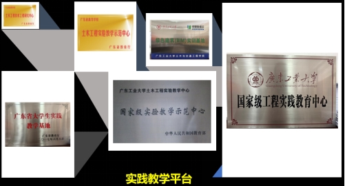 本专业依托国家级“土木工程实验教学示范中心”、广东省高等高校“土木工程技术工程研究中心”、广东省高等学校“土木工程实验教学示范中心”为核心的多层次实践教学平台。本专业依托“国家级工程实践教育中心”和“广东省大学生实践教学基地”等教学平台,与30余家企业签订了校外实践实习基地的协议,如“中山环宇国家级工程实践教育中心”、“深圳环境水务集团有限公司”、“佛山市水业集团有限公司”、“广东省建筑设计研究院”等,为学生得到全方位工程实践训练提供了丰富资源。